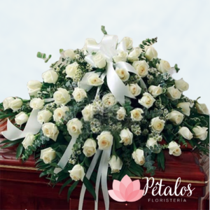 Alegra su día con un hermoso ramillete de rosas blancas con follaje verde, envuelto en plástico o papel y moño.