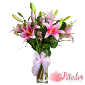 Entre las flores más bellas y emblemáticas de nuestro país, los mágicos lirios destacan de manera especial. Sorprende a alguien con este encantador jarrón que contiene 10 varas de lirios matizados y follaje verde, ideal para cualquier ocasión. (El color de los lirios puede variar según disponibilidad.) Te sugerimos acompañar este arreglo con chocolates, peluches o vinos para hacer tu detalle aún más especial. En el siguiente paso de la compra, podrás añadir estos productos a tu pedido si lo deseas.